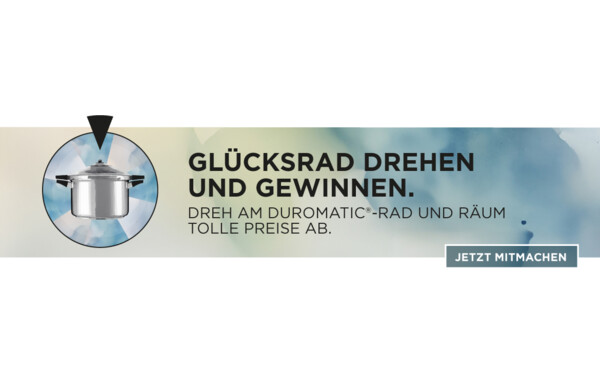 Gewinnen Sie einen Schnellkochtopf von DUROMATIC, SWISS CLEANER oder Gutscheincodes im Wert von 10 % / 20 %.
